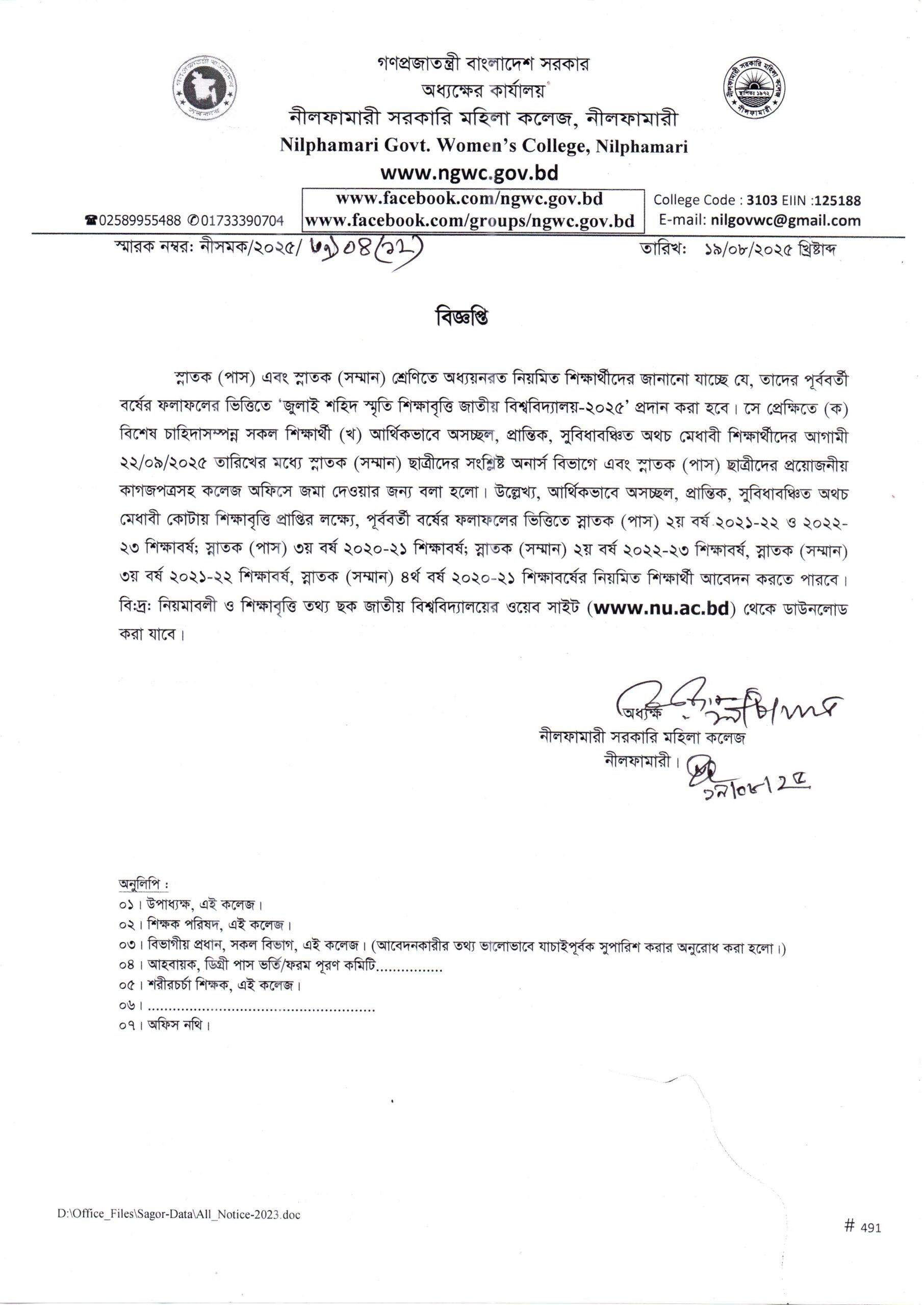 **জুলাই শহিদ স্মৃতি শিক্ষাবৃত্তি নোটিশ**