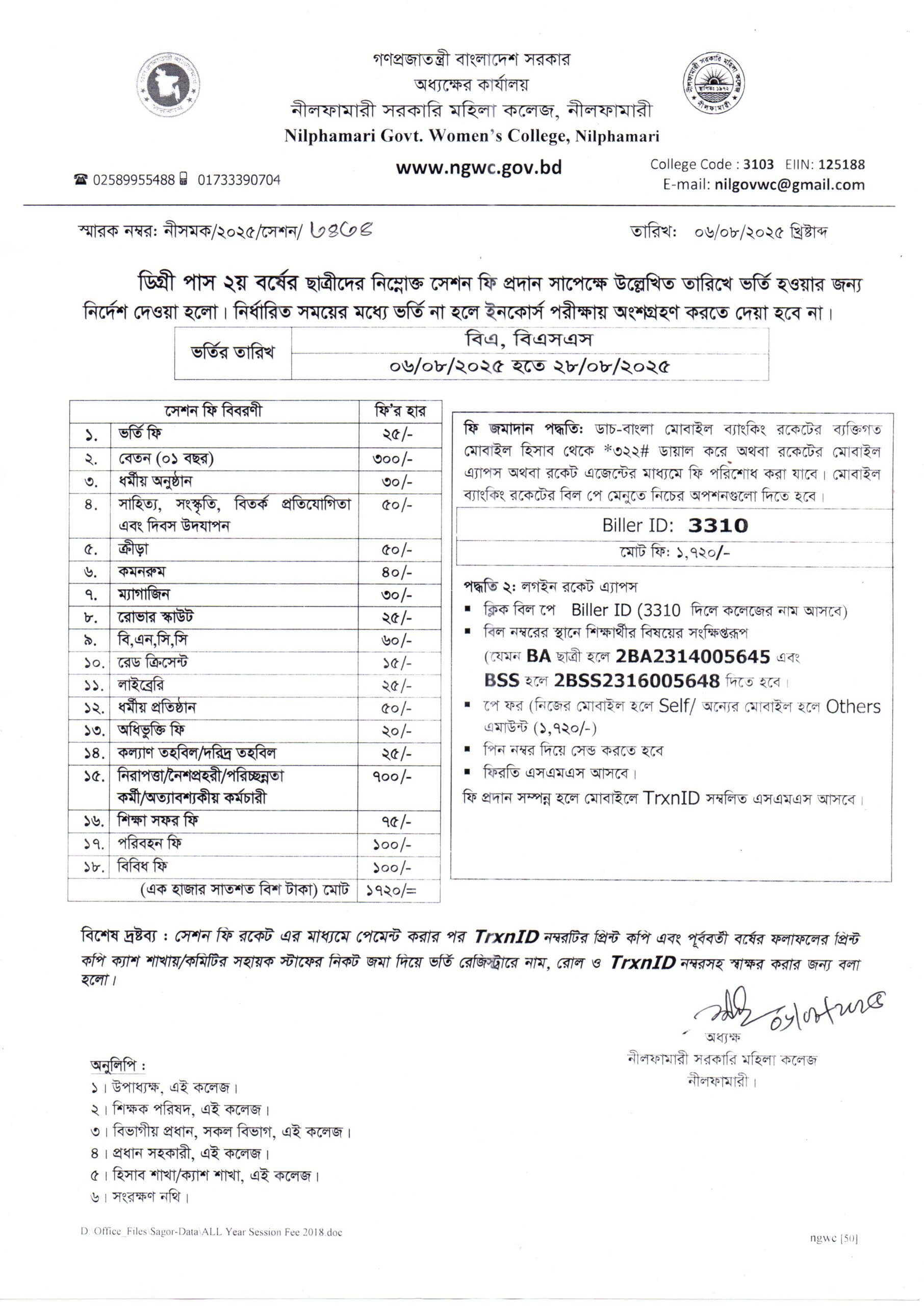 **ডিগ্রী পাস 2য় বর্ষ ভর্তি বিজ্ঞপ্তি**