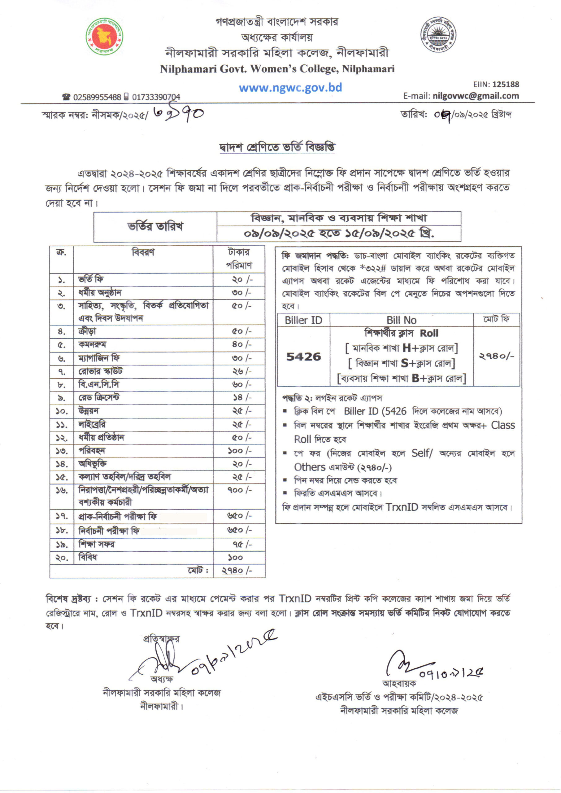 **দ্বাদশ শ্রেণিতে ভর্তি বিজ্ঞপ্তি**