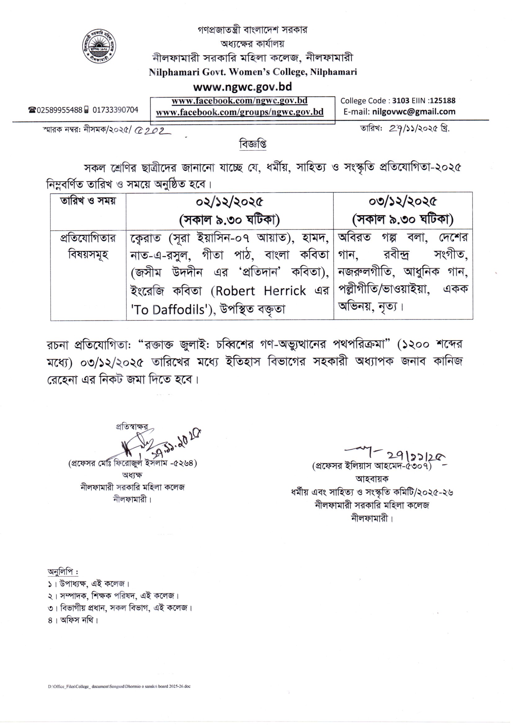 **ধর্মীয়, সাহিত্য ও সংস্কৃতি প্রতিযোগিতা-২০২৫ নিম্নবর্ণিত তারিখ ও সময়ে অনুষ্ঠিত হবে**