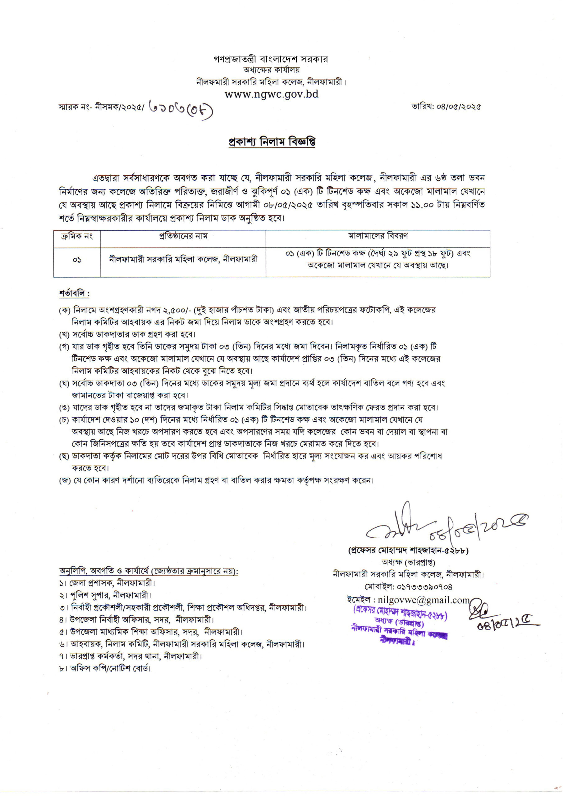 **প্রকাশ্য নিলাম বিজ্ঞপ্তি**