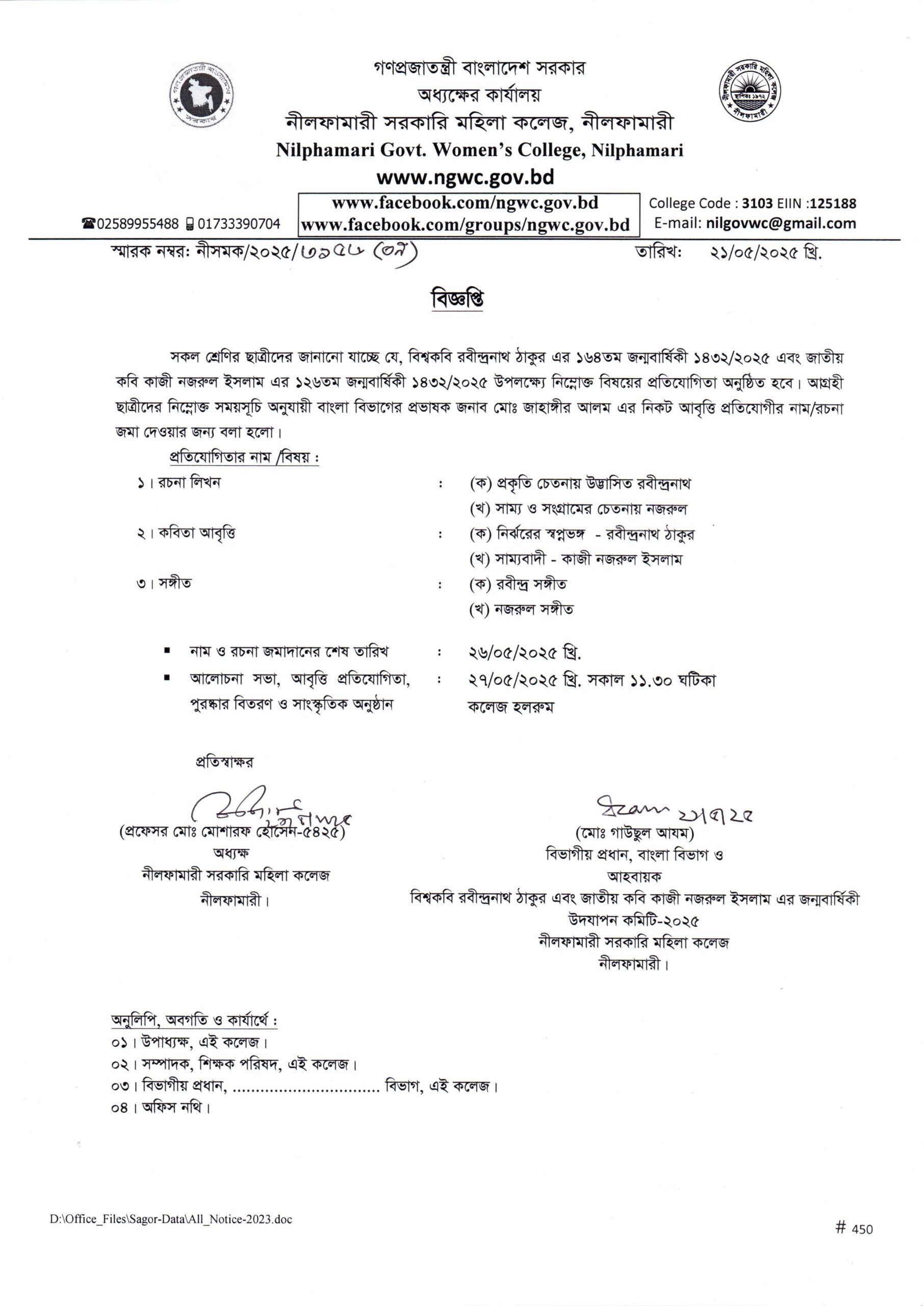 **বিশ্বকবি রবীন্দ্রনাথ ঠাকুর এর ১৬৪তম এবং জাতীয় কবি কাজী নজরুল ইসলাম এর ১২৬তম জন্মবার্ষিকী উপলক্ষ্যে বিভিন্ন প্রতিযোগিতার আয়োজন**