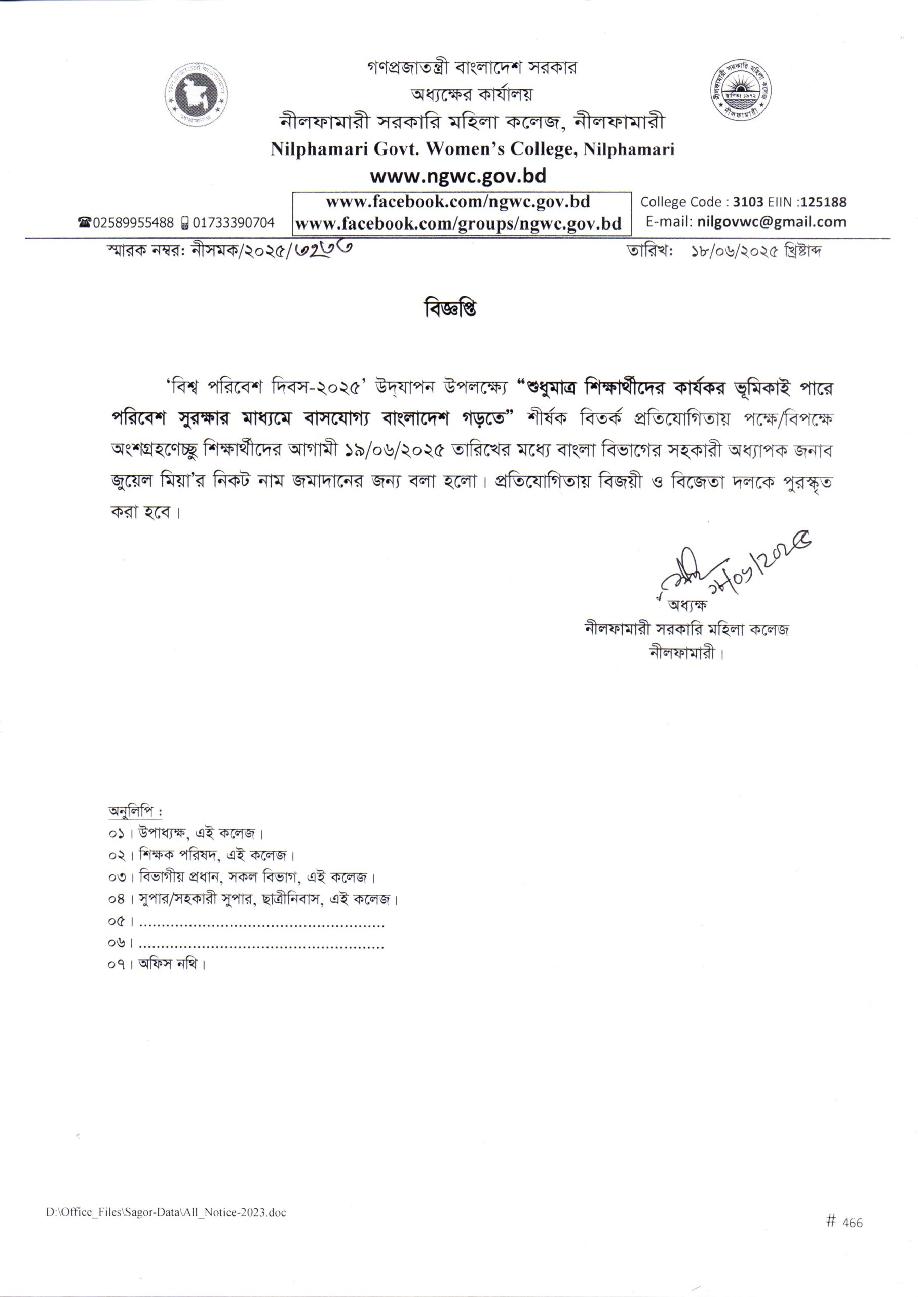 **বিশ্ব পরিবেশ দিবস উপলক্ষ্যে বিতর্ক প্রতিযোগিতা**