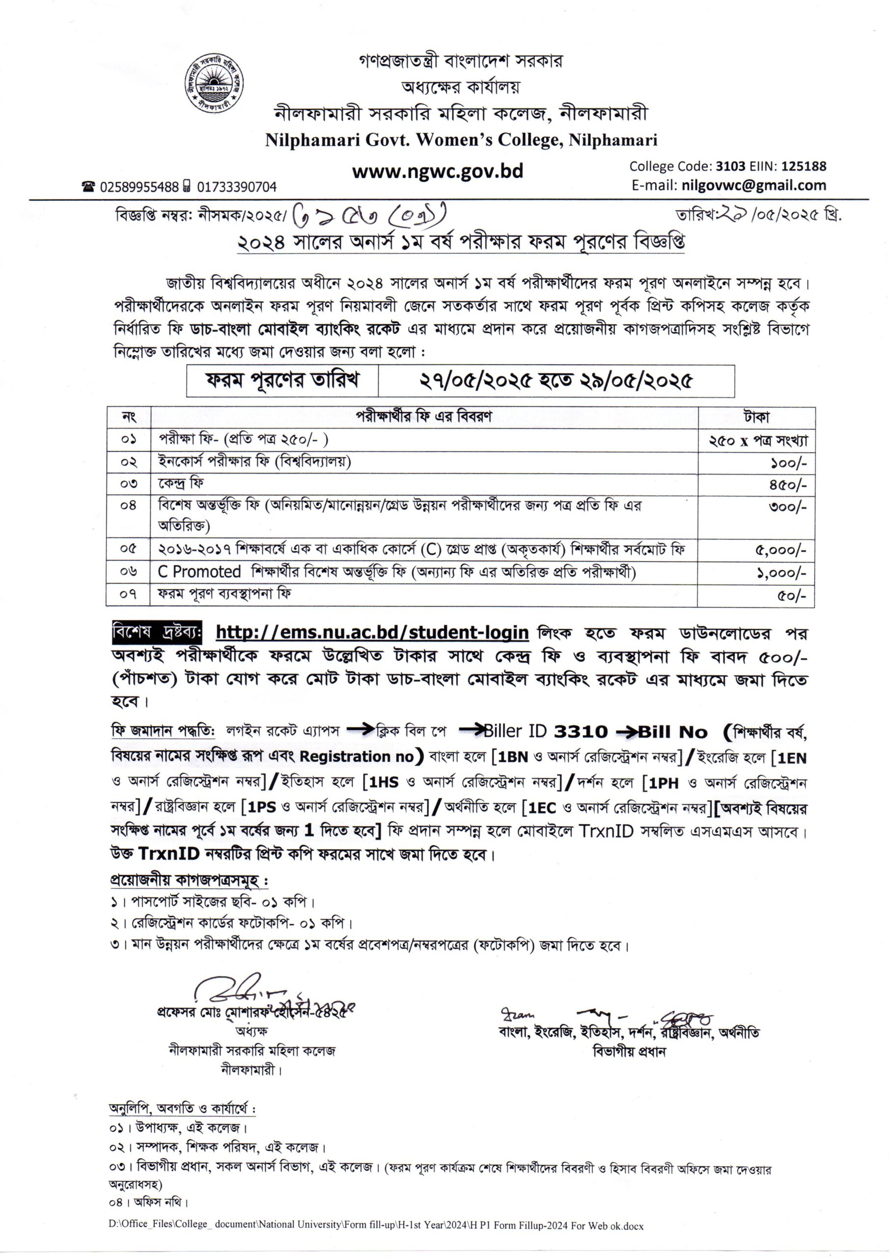 **২০২৪ সালের অনার্স ১ম বর্ষ পরীক্ষার ফরম পূরণের বিজ্ঞপ্তি**