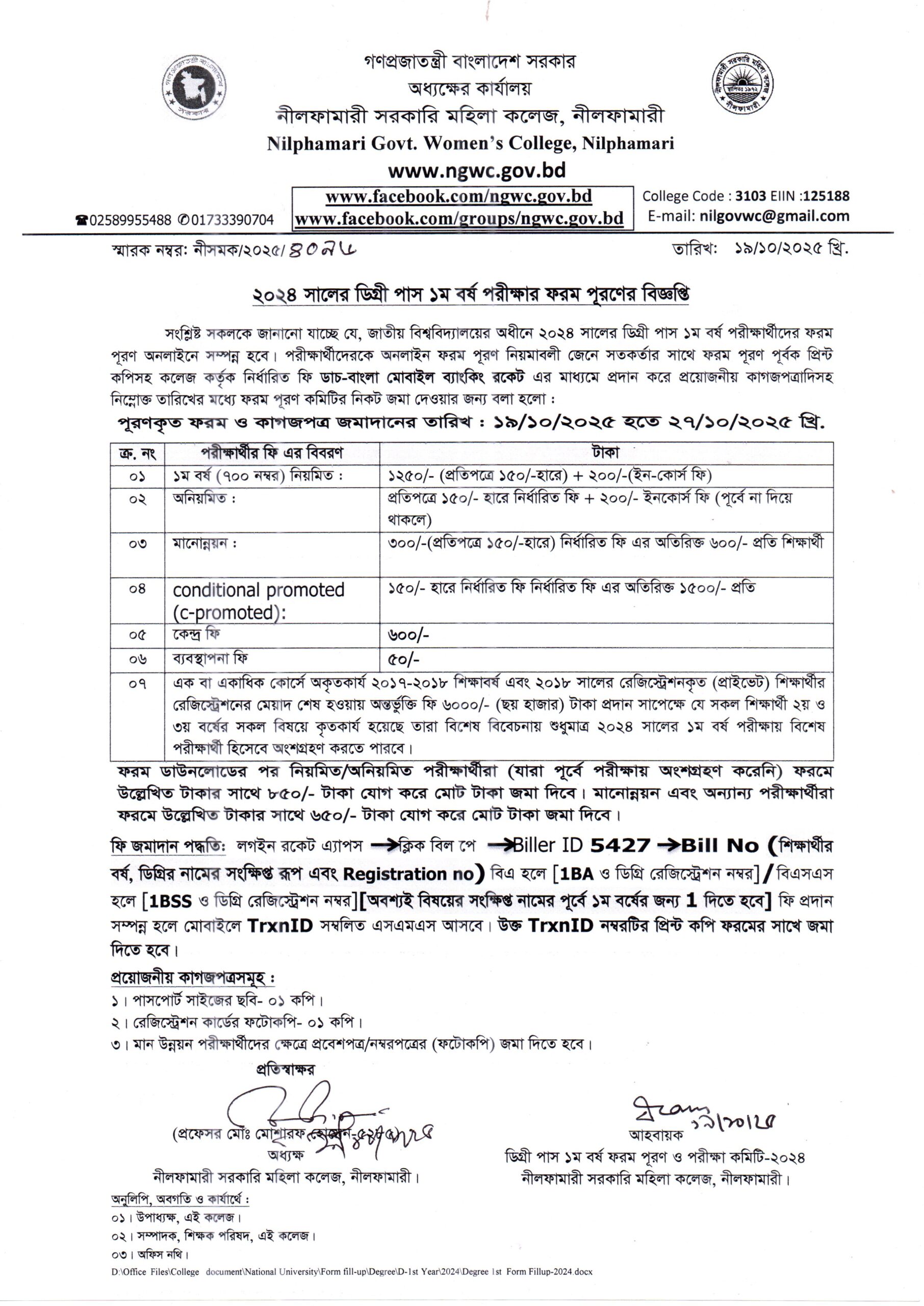 **২০২৪ সালের ডিগ্রী (পাস) ১ম বর্ষ পরীক্ষার ফরম পূরণের সময় বৃদ্ধি**