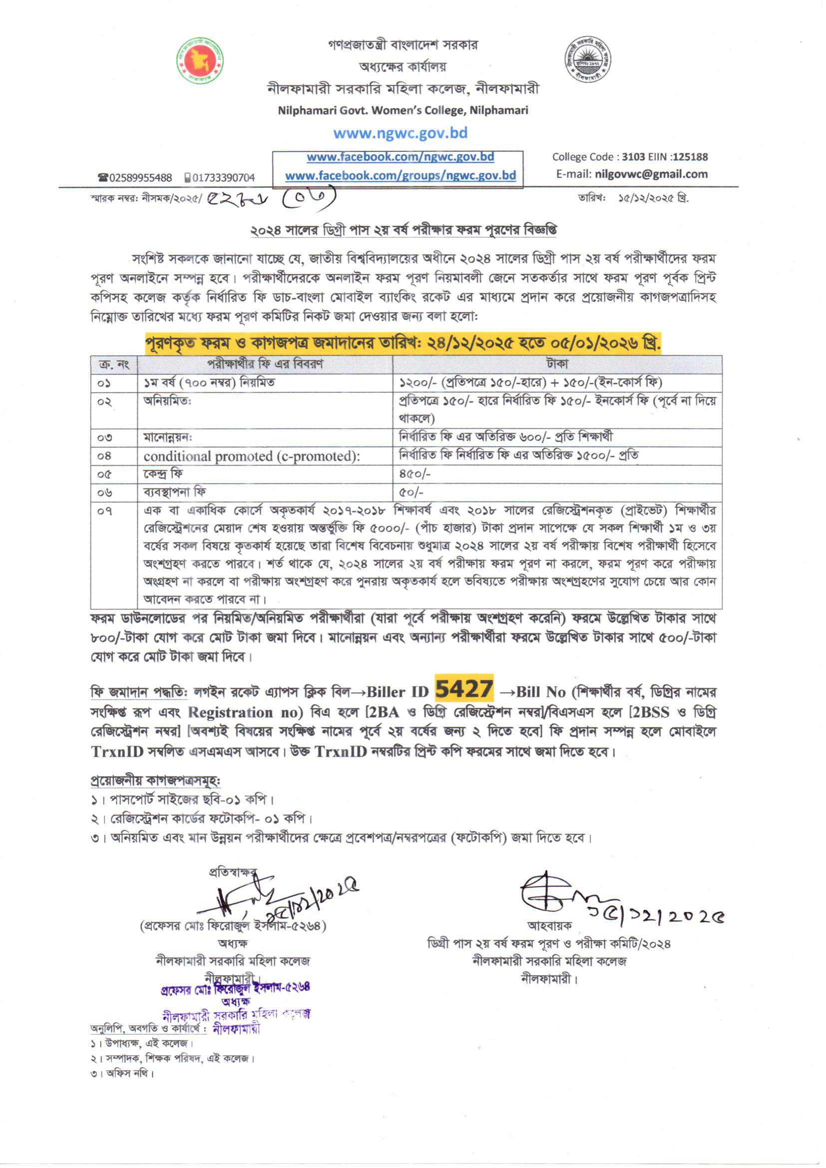 **২০২৪ সালের ডিগ্রী পাস ২য় বর্ষ পরীক্ষার ফরম পূরণের বিজ্ঞপ্তি**