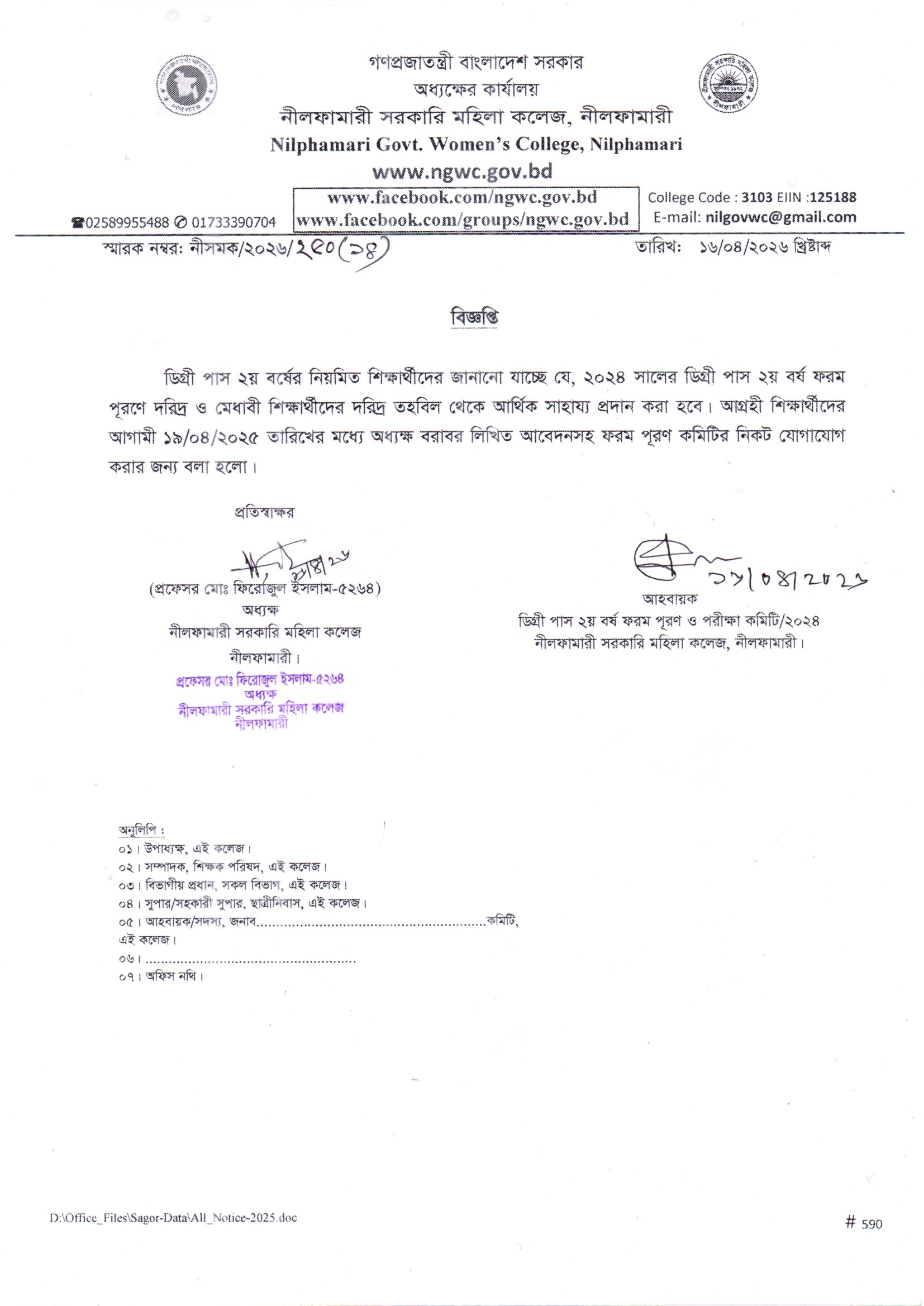 **২০২৪ সালের ডিগ্রী পাস ২য় বর্ষ ফরম পূরণে দরিদ্র ও মেধাবী শিক্ষার্থীদের দরিদ্র তহবিল থেকে আর্থিক সাহায্য প্রদান লক্ষ্যে আবেদন গ্রহণ**