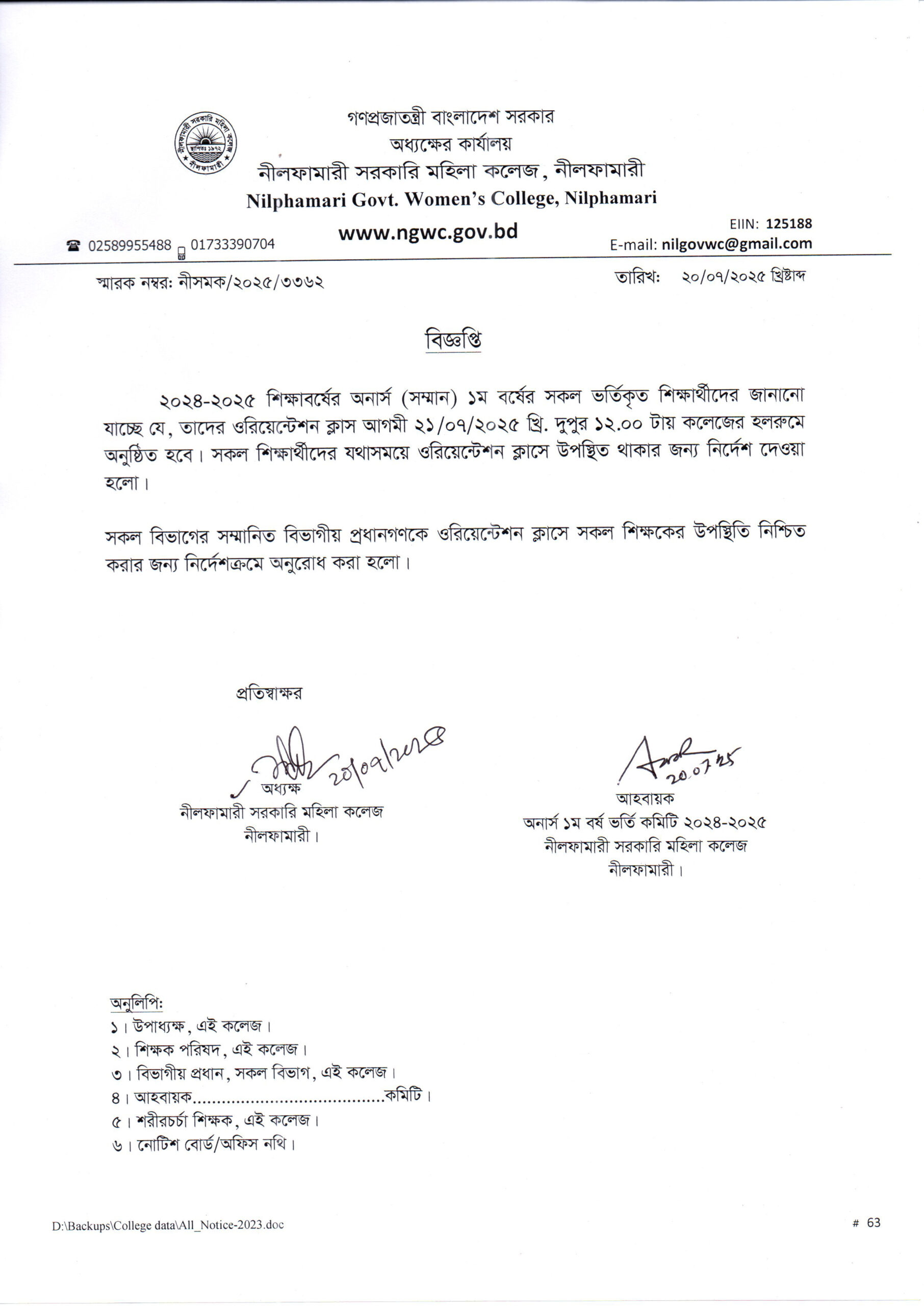 **২০২৪-২০২৫ শিক্ষাবর্ষের অনার্স (সম্মান) ১ম বর্ষে ভর্তিকৃত শিক্ষার্থীদের ওরিয়েন্টেশন ক্লাস**