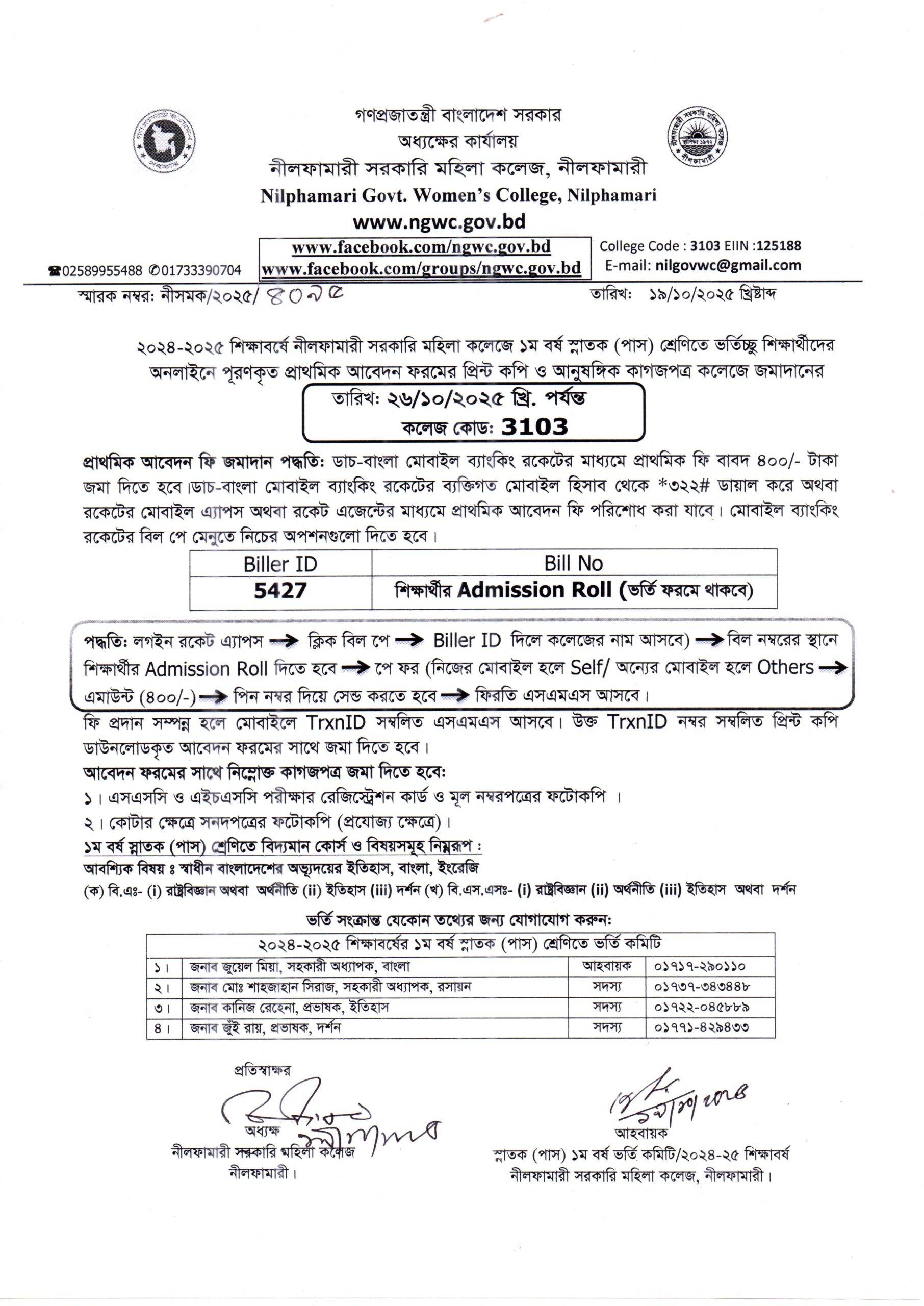**২০২৪-২০২৫ শিক্ষাবর্ষের ডিগ্রী (পাস) শ্রেণিতে ভর্তিচ্ছু শিক্ষার্থীদের প্রাথমিক আবেদন জমাদানের বর্ধিত সময়সূচী অনুযায়ী ভর্তি বিজ্ঞপ্তি***