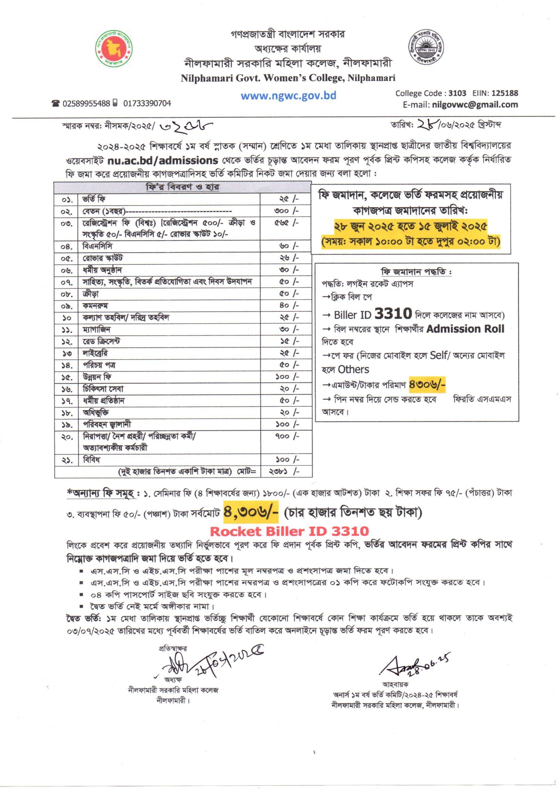 **২০২৪-২০২৫ শিক্ষাবর্ষের ১ম বর্ষ স্নাতক (সম্মান) শ্রেণিতে ১ম মেধা তালিকায় স্থানপ্রাপ্ত শিক্ষার্থীদের ভর্তি বিজ্ঞপ্তি**