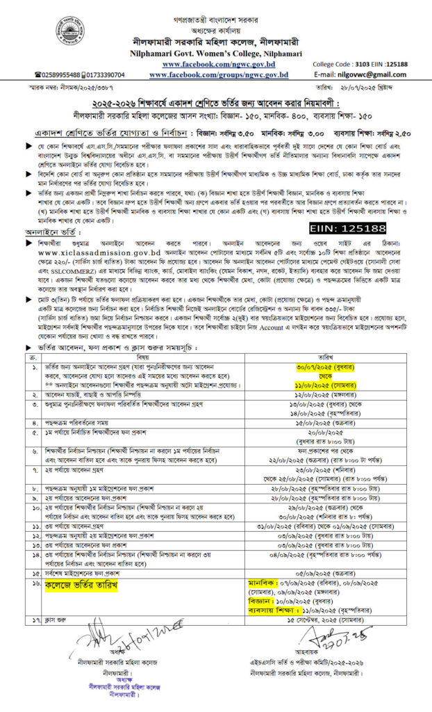 **২০২৫-২০২৬ শিক্ষাবর্ষে একাদশ শ্রেণিতে ভর্তি আবেদনের নিয়মাবলী**