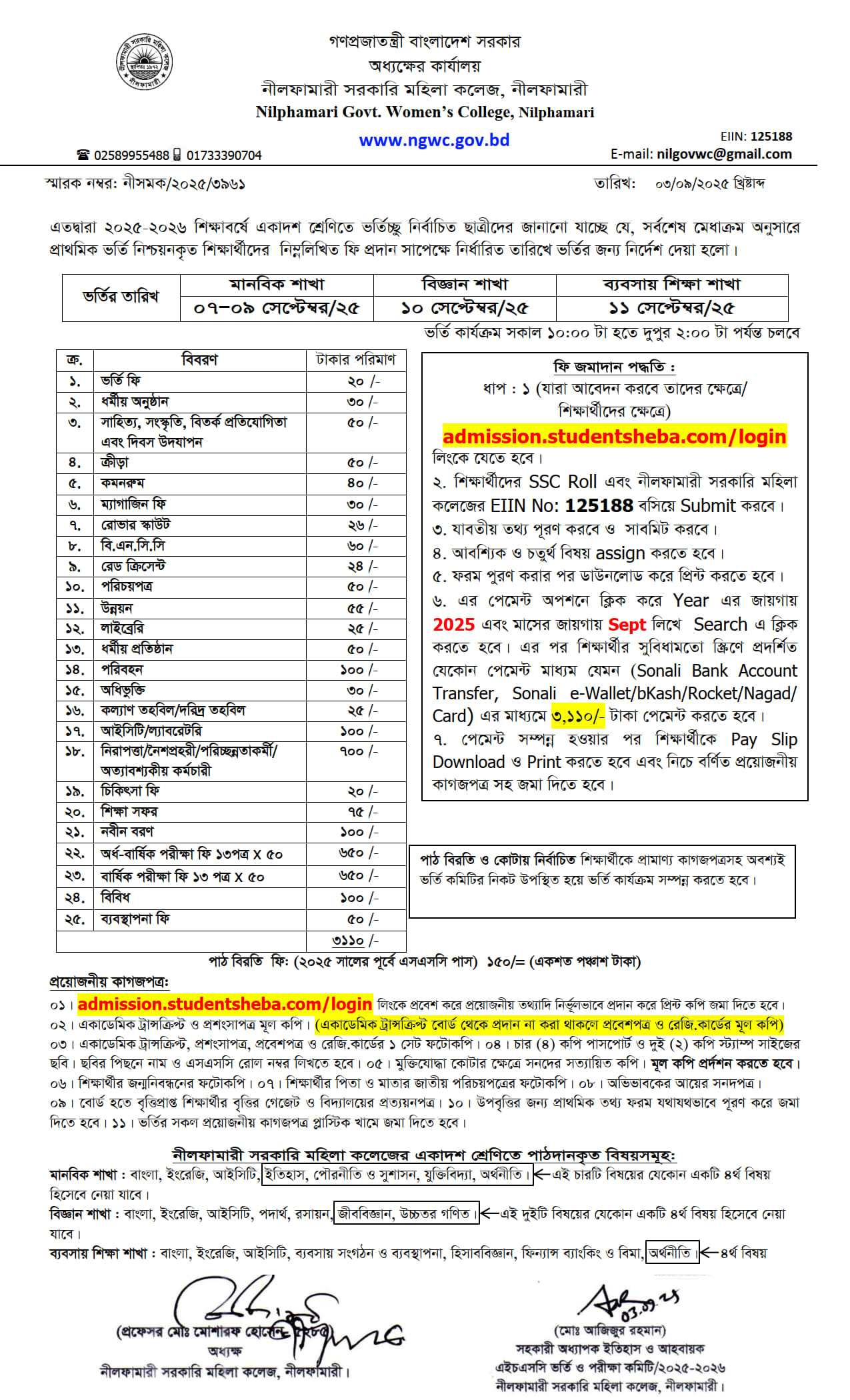 **২০২৫-২০২৬ শিক্ষাবর্ষে একাদশ শ্রেণিতে ভর্তি বিজ্ঞপ্তি**